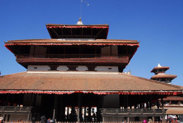 Three Storey Hall (Temple and Sattal), completely destroyed 2015 by earthquake. Kasthamandap means "House of Wood", It is the emblem and the origin of the name of Kathmandu. One of the 50 Buddhist Power Places acc. Keith Dowman.