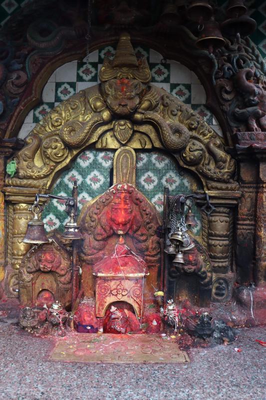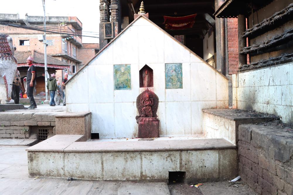 Single Roof Temple (Pagoda Style) with no icon, but plain stones to worship. Pradakshina Station on Durga Puja during Dashain Festival. |